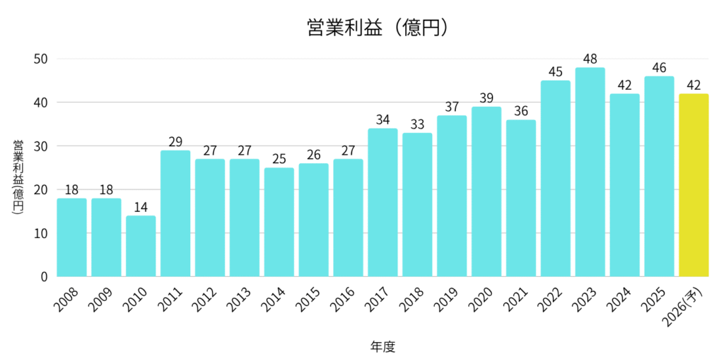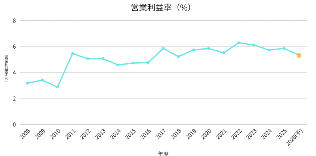 グラフを見れば、リーマンショック後(2010年以降)、営業利益は着実に右肩上がりであることが分かります。