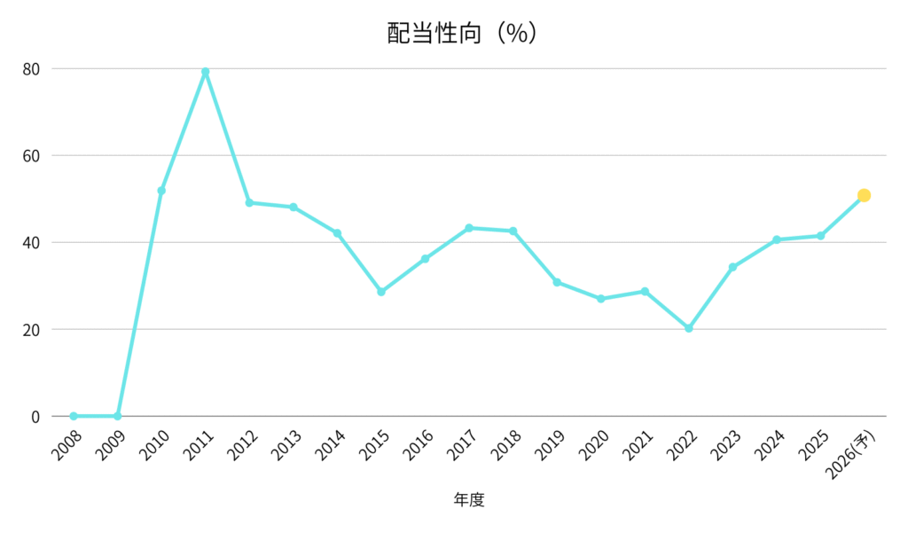 しかも、2023年に発表された中期経営計画では「配当性向を40%」「年間配当金100円を下限とし減配せずに配当維持または増配を目指す(累進配当)」と株主に力強く宣言しました。