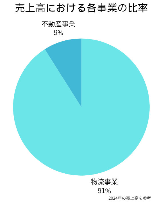この図からわかるように、物流事業が売上高の91%を占めており、日本のインフラを支えているのが分かります。